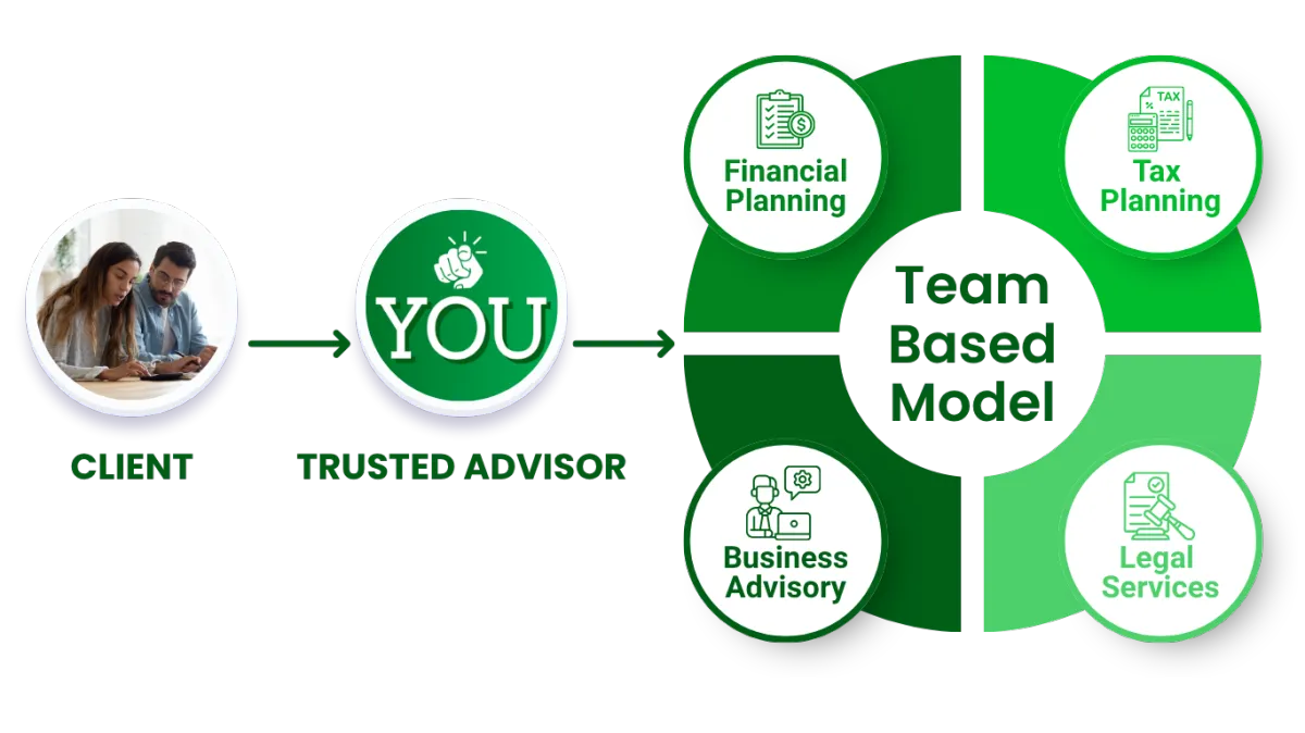 The Hidden Profits Team-Based Model gives you access to a nationwide network of specialists in Financial Planning, Tax Strategy, Legal Services, and Business Advisory all working behind the scenes to serve your clients under your agency’s umbrella.
